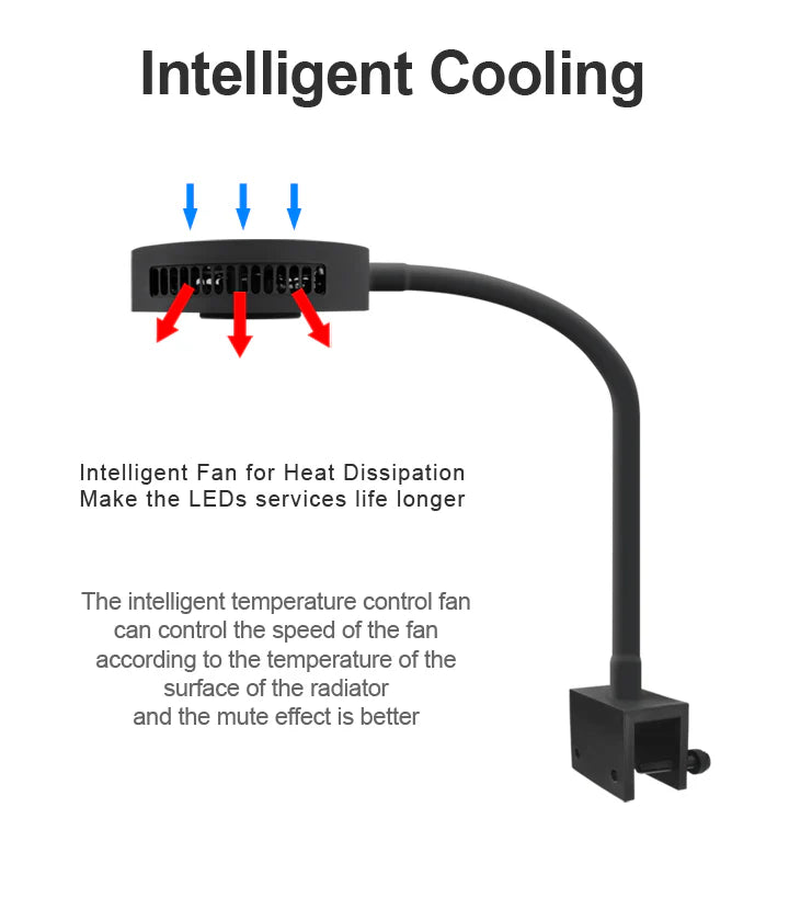 The new and improved Aquaknight V2 LEDs come with a redesigned LED board and use true 3watt Cree LEDs. Each lamp has a built-in heat sink and a temperature-controlled, silent cooling fan. In addition, we have added more LEDs for more power. The Aquaknight V2 is more compact and has a larger lens angle for an even light distribution.