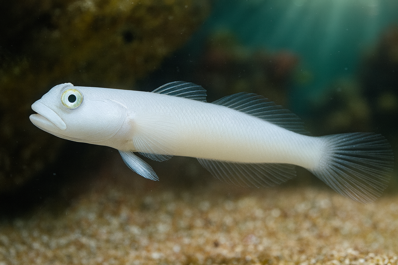 "My White Glider Goby is such a graceful fish! It glides across the sand bed, sifting and keeping everything spotless. A real helper in my reef tank."